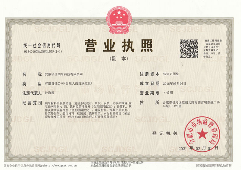 安徽華仕納米科技有限公司,是一家專(zhuān)門(mén)從事混凝土、水泥砂漿、制品的外加劑產(chǎn)品、研發(fā)銷(xiāo)售及混凝土生產(chǎn)和外加劑咨詢(xún)服務(wù)的公司。公司辦公地址位于合肥市包河區(qū)華爾街、研發(fā)生產(chǎn)位于浙江中科院應(yīng)用技術(shù)研究院;