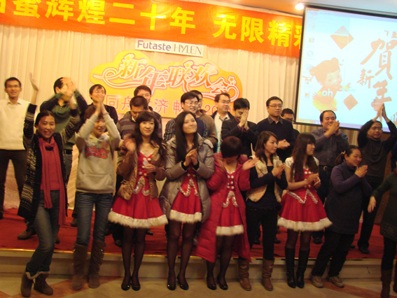 年會上,員工們表演了精彩的節(jié)目,一首歌伴舞《歡樂中國年》博得全場叫好,集團總部和蜜福堂合作創(chuàng)作并表演的小品《非雷勿擾》,給大家?guī)黻囮嚉g樂和笑聲;年會上穿插表演的游戲、舞蹈、詩朗誦、歌曲等節(jié)目,處處洋溢著青春活力和激情,掀起一輪又一輪的高潮,到場嘉賓紛紛報以熱烈的掌聲,集團總部和蜜福堂全體人員的合唱《我相信》引來全場共鳴,年會在活潑、熱烈溫馨的氣氛中落下帷幕。