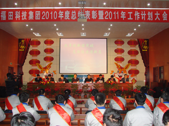 2011年2月16日上午,福田科技集團2010年度總結(jié)表彰暨2011年工作計劃大會在工業(yè)園餐廳二樓禮堂隆重召開。市經(jīng)信局局長楊成金,集團董事長王星云、總經(jīng)理趙光輝、副總經(jīng)理秦加利、田強、熊先鋒、孫魯、李玉斌及部分職工代表共400余人參加了此次大會。