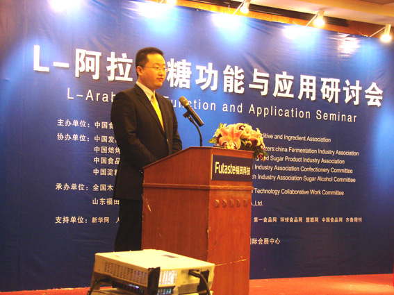 展會(huì)開幕當(dāng)天下午,由中國(guó)食品添加劑和配料協(xié)會(huì)和福田科技集團(tuán)共同舉辦的“L—阿拉伯糖功能與應(yīng)用研討會(huì)”在光韻一號(hào)廳隆重舉行,中國(guó)發(fā)酵工業(yè)協(xié)會(huì)、中國(guó)食品添加劑和配料協(xié)會(huì)名譽(yù)理事長(zhǎng)尤新,中國(guó)淀粉工業(yè)協(xié)會(huì)糖醇專業(yè)委員會(huì)理事長(zhǎng)金樹人,福田科技集團(tuán)總工程師孫魯?shù)刃袠I(yè)專家以“L-阿拉伯糖功能與應(yīng)用”為主題展開進(jìn)行了深入交流和探討。研討會(huì)倡導(dǎo)的食品添加劑和配料安全化、營(yíng)養(yǎng)性、功能化和多樣化的發(fā)展方向,代表了行業(yè)的發(fā)展趨勢(shì)。研討會(huì)上,福田科技集團(tuán)將潛心研究完成的L-阿拉伯糖功能與應(yīng)用成果與行業(yè)分享,顯示出博大的胸襟。