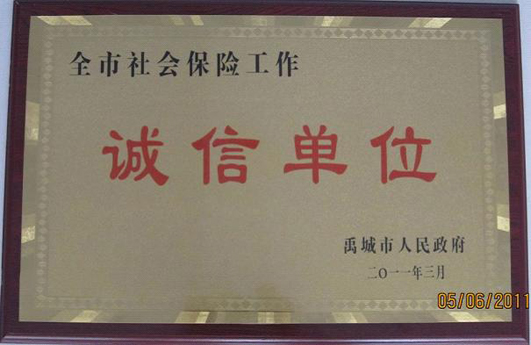 (上圖:公司所獲“全市社會(huì)保險(xiǎn)工作誠信單位”榮譽(yù)牌匾)