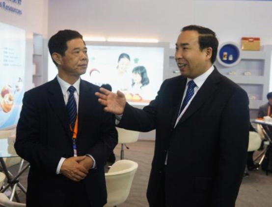(上圖:展會現(xiàn)場,張安民書記與王星云董事長親切交談)