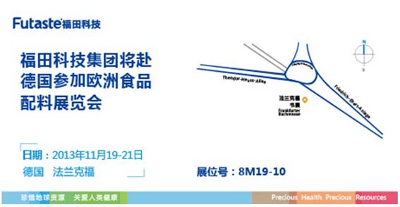 歐洲食品配料展覽會Fi Europe 2013將于11月19至21日在德國法蘭克福舉辦。屆時我集團將赴德國參展,展位號為:8M19-10,歡迎廣大新老客戶前來參觀指導。