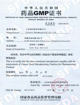 2013年11月20日,山東福田科技集團(tuán)有限公司新建原料藥(木糖醇)車間作為功能糖行業(yè)首家企業(yè)取得新版GMP標(biāo)準(zhǔn)認(rèn)證。