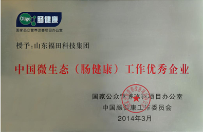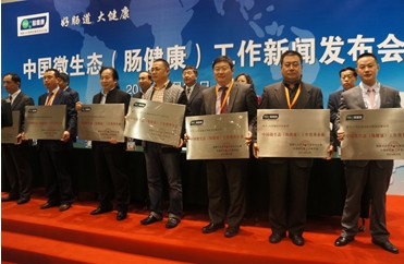 (中國食品工業(yè))近日,在上海世博展覽館與第十八屆中國國際食品添加劑和配料展覽會同期舉辦的中國微生態(tài)(腸健康)工作新聞發(fā)布會上,對于山東福田科技集團有限公司在國家“公眾營養(yǎng)改善——微生態(tài)健康工作”中做出的卓越貢獻。中國微生態(tài)健康促進辦公室、中國腸健康工作委員會授予福田企業(yè)“中國腸健康工作優(yōu)秀企業(yè)”榮譽稱號,山東福田科技集團副總經理田強(右二)出席會議并代表企業(yè)領獎。