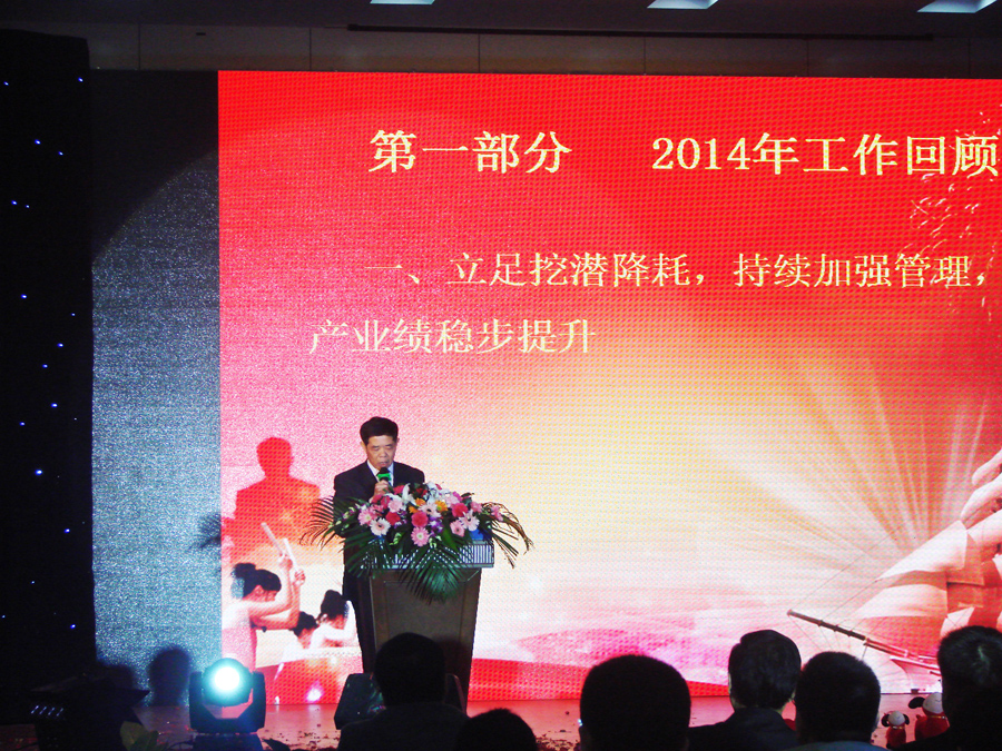 董事長王星云在年會上作了工作報告,全面總結(jié)了2014年集團(tuán)各項(xiàng)工作,安排部署了2015年的工作任務(wù)目標(biāo),他指出,集團(tuán)干部職工要立足崗位、扎實(shí)工作,開啟新動力,凝聚正能量,合力打造一流的產(chǎn)品,一流的品牌,一流的管理,一流的團(tuán)隊(duì)。