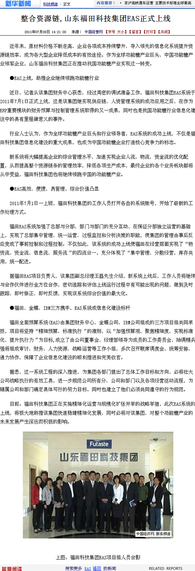 新華網(wǎng):整合資源鏈,山東福田科技集團(tuán)EAS正式上線