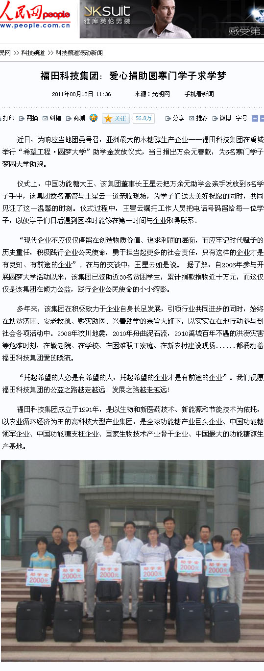 人民網(wǎng):福田科技集團(tuán)愛心捐助圓寒門學(xué)子求學(xué)夢(mèng)