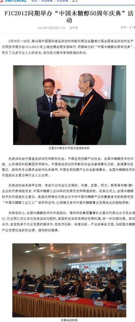 騰訊報(bào)道我集團(tuán)“木糖醇50周年”慶典活動(dòng)